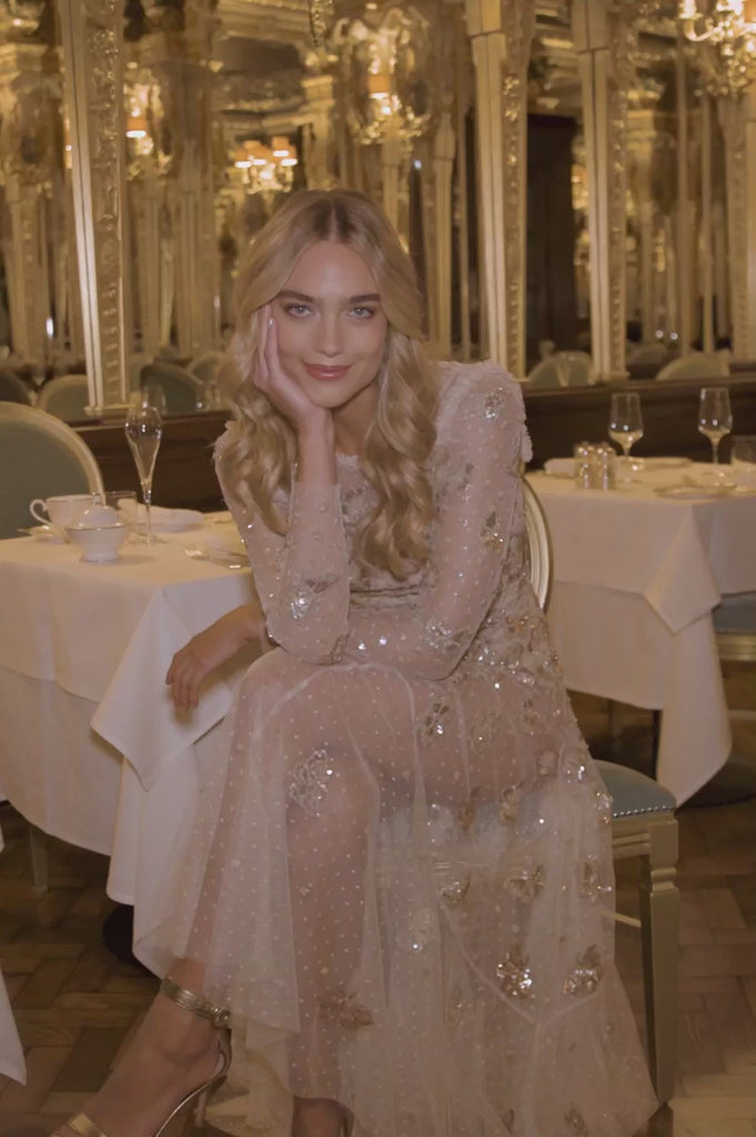 Papillon Sheer Ankle Gown Champagne